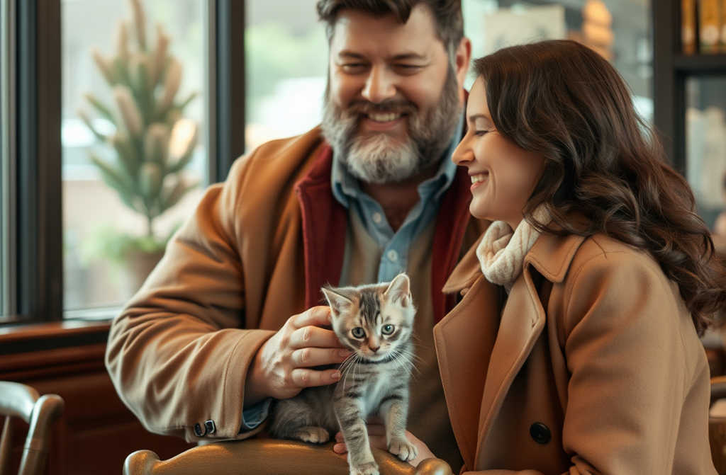 Pribėgęs padavėjas pasiūlė pasirūpinti kačiuku. Tačiau aukštas, beveik dviejų metrų vyras paėmė verkiančią pilką pūkuotukę ir pasodino ją ant šalia esančios kėdės: