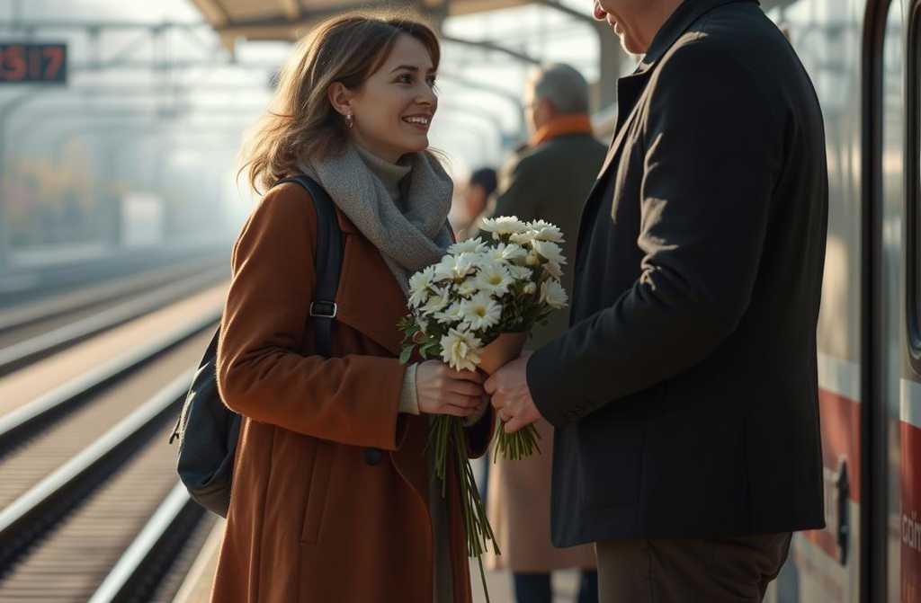 Vagonas sustojo. Eglė apkabino Aleksą, švelniai pakabino jo lūpą, pasveikino šeimą. Prie platformos stovėjo įspūdingas vyras su dviem berneliais, rankoje nešiojantis milžinišką baltų krizantemų puokštę. Eglė bėgo į juos, bučinėjo vyrą ir sūnus, o po to pasakė Aleksui tyliai: