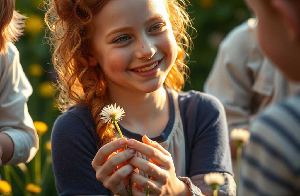 Smėliniame kieme, kai šalia pradeda verksti vaikas, ji palieka savo smėlio pilis, bėga pagelbėti, švelniai glosto plaukus ir ramindama žodžiais sustabdo verkimą. Vaikai iš karto sustoja, o ji vis labiau tiki, kad yra angelas.