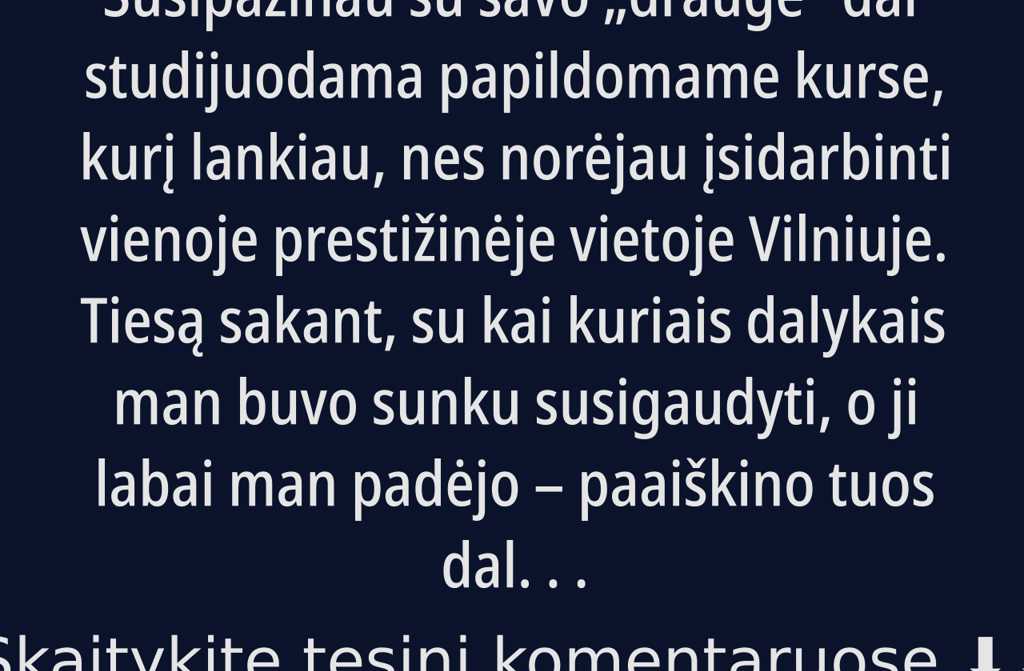 Susipažinau su savo drauge dar studijuodama papildomame kurse, kurį lankiau, nes norėjau įsidarbinti vienoje prestižinėje vietoje Vilniuje. Tiesą sakant, su kai kuriais dalykais man buvo sunku susigaudyti, o ji labai man padėjo paaiškino tuos dalykus, kurių nesupratau. Laikas bėgo, kursą abi baigėme, bet ryšys tarp mūsų liko. Ji vis dar finansiškai rėmėsi į tėvus, o aš jau buvau ištekėjusi ir, deja, neturėjau tokios paramos.