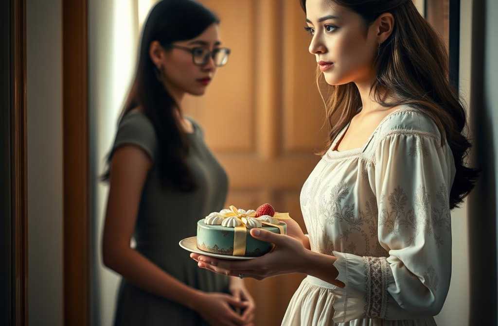 Dovilė kruopščiai sušukavo plaukus, apsivilko gražiausia suknelė ir, švelniai pasibarsčiusi kvepalais, išėjo į vyresniosios sesers Gabijos gimtadienio šventę. Rankose ji nešė išradingai supakuotą dėžutę su tortu, tikėdamasi, kad tai bus maloni staigmena ir šiek tiek pagerės jų sudėtingus santykius. Atėjusi į penktą aukštą, Dovilė du kartus paskambino. Duris atidarė švytinti Gabija naujame chalate ir nepriekaištingai susuktais šukuosniais ir entuziastingai plotelėjo rankomis: