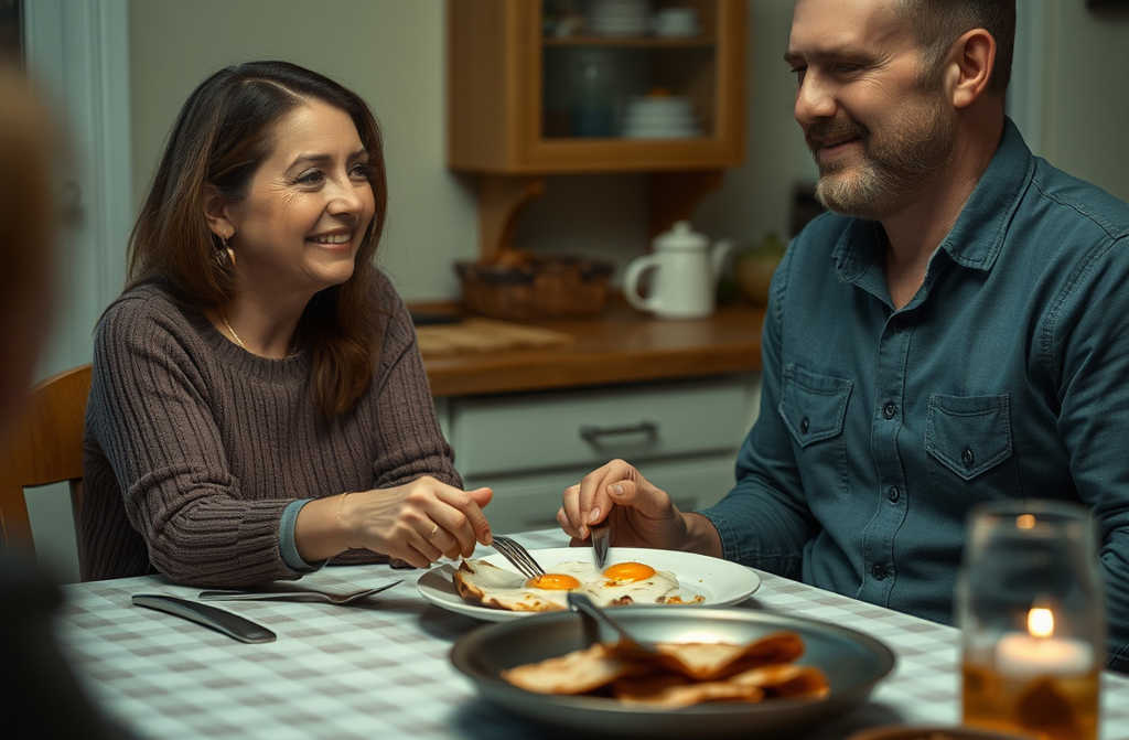 Kiaušinienė buvo nei sūdyta, nei prisvilusi, bet nieko skanesnio jis nebuvo valgęs ilgą laiką. Nes ta vakarienė buvo ne paslauga. Tai buvo dviejų lygių žmonių vakarienė.