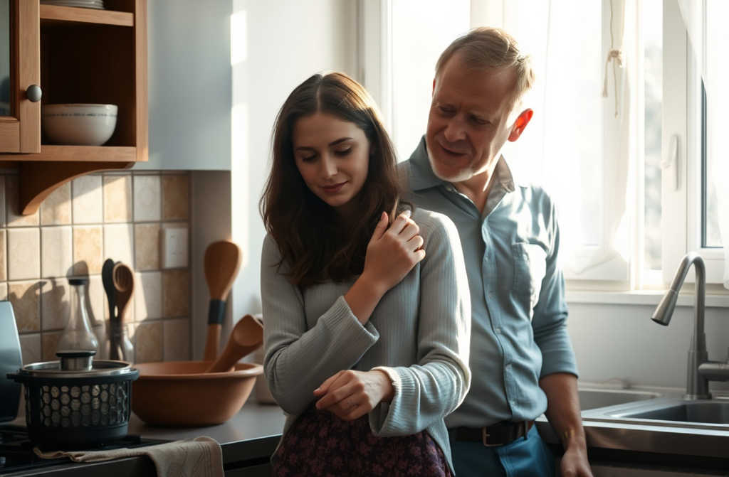 Aldona, sėdėjusi stalo gale, švelniai paglostė dukrą ranka.