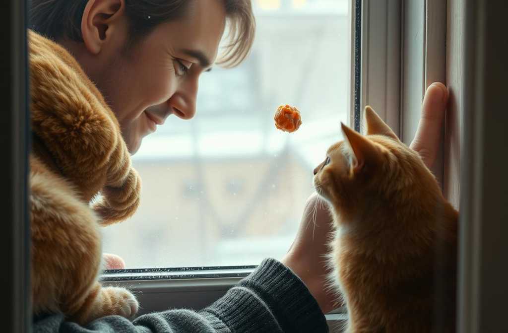 Наоборот, стал тайком бросать за окно кусочек колбасы, котлету, сосиску. Кот ел. Однажды Виктор подошёл к стеклу, и рыжий, чуть дрожа, поднял лапу к стеклу и мяукнул.