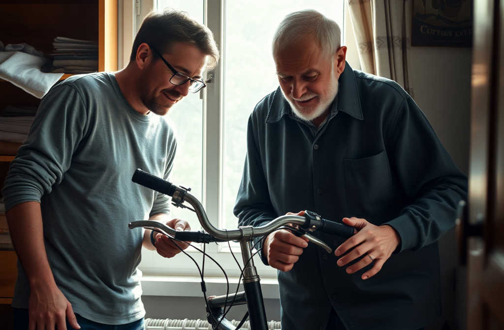 Sūnus prisimena: kaip kieme važinėjo, kaip griuvo, kai tėvas tyliai pakeldavo, nubraukdavo smėlį nuo kelių, patikrindavo ar grandinė vietoje. Tėtis tada beveik negyrė, bet į daiktus žiūrėjo taip, tarsi jie būtų gyvi ir už juos atsakingas.
