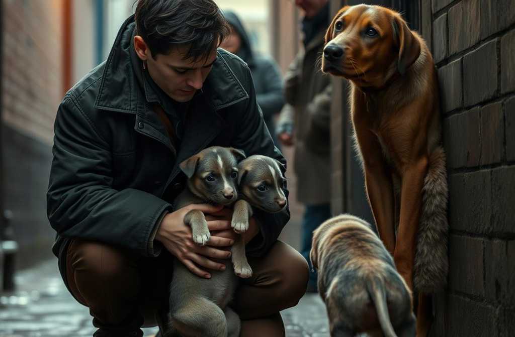 Ten, maišo dugne, susikaupus į gyvą, drebantį mazgelį, dvi mažytės šuniukės. Jos nugarėlės ašarų pilnos, kailis drėgnas ir purvinas, bet jos gyvos. Jų smulkios kūneliai šiek tiek pakyla kvėpavimo metu. Vytautas atsargiai, širdis sustingusi, įtęsia ranką ir paima vieną ji telpa jo delne, traški ir begriuvė. Tuomet ištraukia antrą, švelniai suspaudžia abi prie savo krūtinės, po striukę, bandydamas jas šilti savo šiluma. Jis jaučia, kaip jų maži širdelės plakos kartu su jo, vis greičiau pulsuojančia širdimi.
