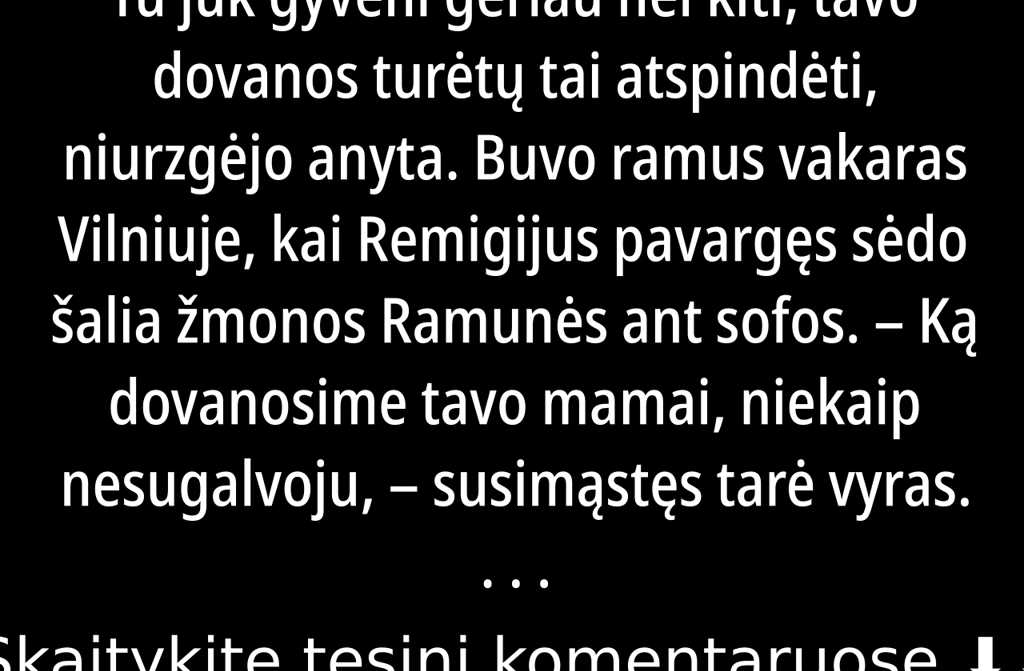 Buvo ramus vakaras Vilniuje, kai Remigijus pavargęs sėdo šalia žmonos Ramunės ant sofos.