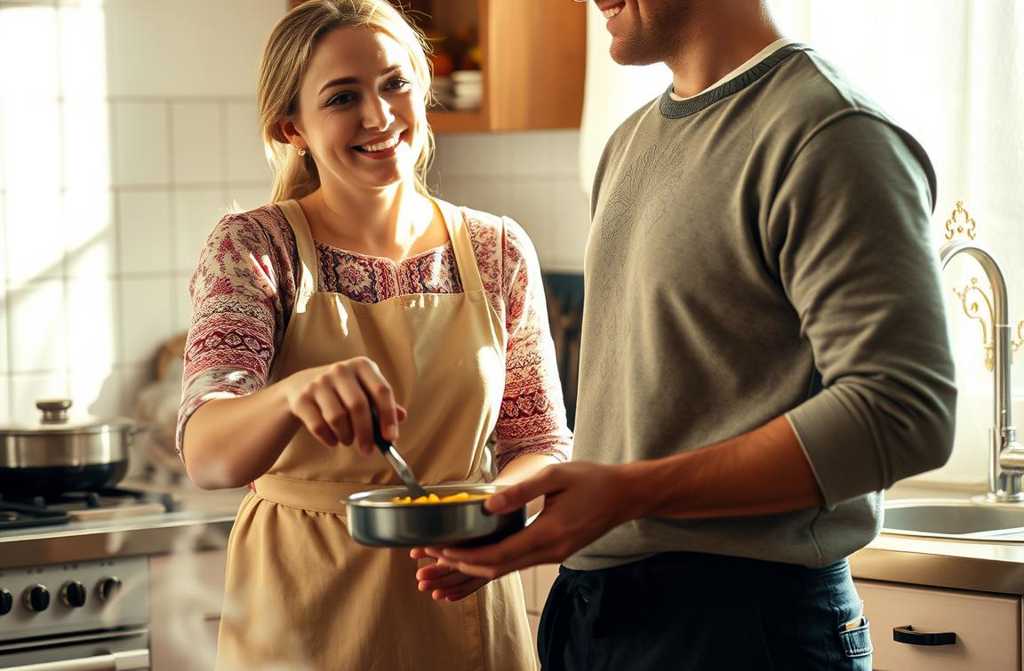 Rankos! Vyrui kiti darbai. Jis maitintojas! O jaukumas, švara tai šventos moters pareigos. Jei nesugebi, gal būt mesti darbą? Ar anksti keltis? Aš pats penkių valandų ryte keldavau, kad vyrui kepčiau šviežius blynus prieš pamainą. O tu? Pusfabrikaus, gal, įkiški?