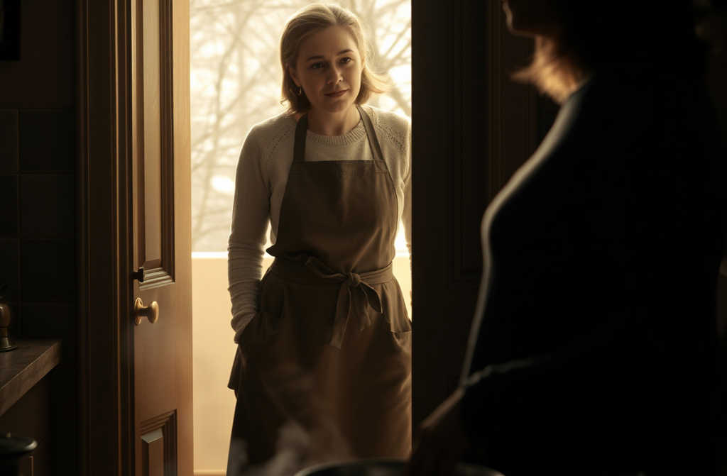 Ji stovėjo prie viryklės, maišė ką didžiulėje puode ir atsisuko su šypsena, kuri jau atrodė pavojingai pažįstama.