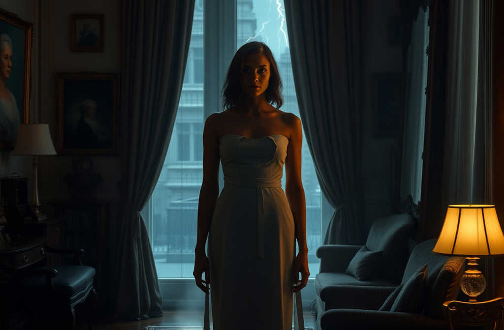 Pažadino griausmas, o blyksnis apšvietė kambarį ir ji pamatė seną moterį, stovinčią priešais. Vyras miegojo, o ji, paralyžiuota baimės, negalėjo išsakyti nė žodžio.