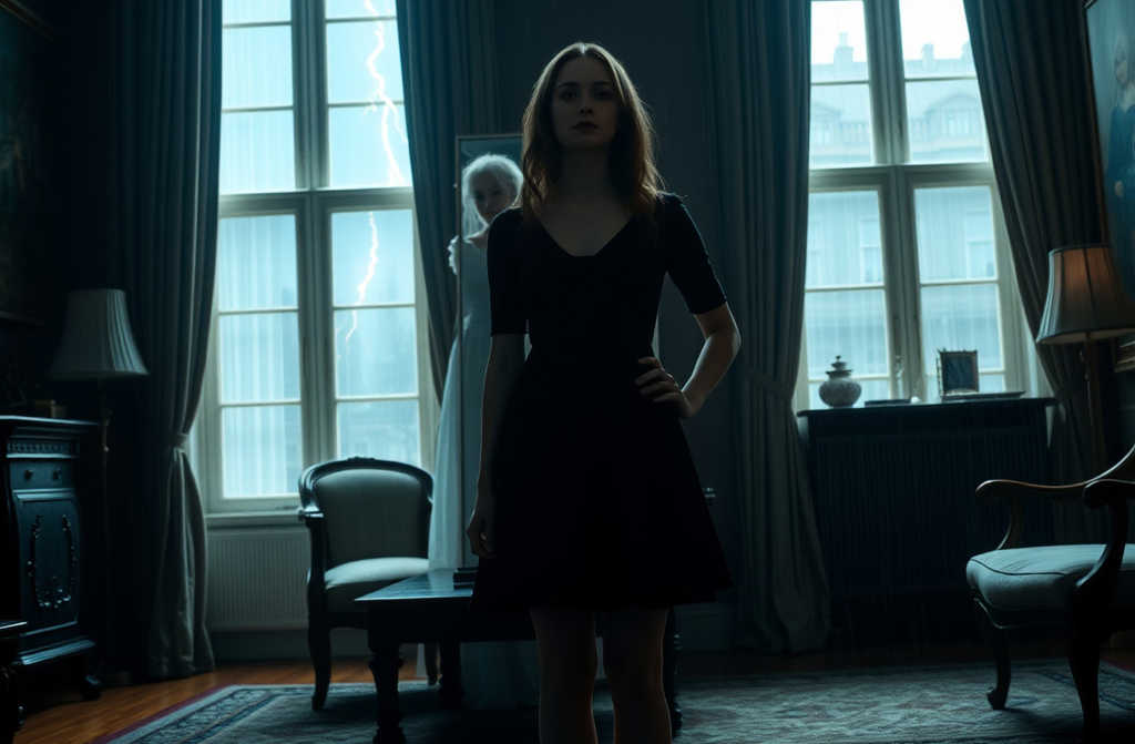Ja pertraukė griausmo trenksmas, o žaibas apšvietė kambarį priešais ją stovėjo senutė.
