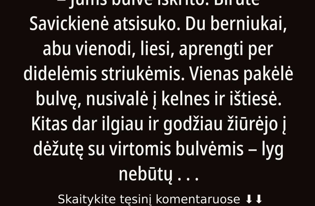 Birutė užmerkė akis. Prieš dvidešimt metų ji dviem alkaniems berniukams ištiesė saują bulvių ir neatsuko šono. Jie sugrįžo ir atidavė jai viską su kaupu.