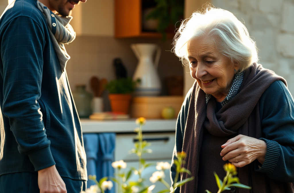 Mama, šluostydamasi rankas į lininiu prijuoste, įžengė į kambarį su išsisklaidžiusiu miltų kvapu.