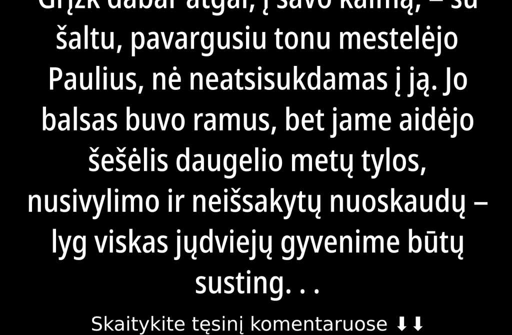 Grįžk dabar atgal, į savo kaimą, su šaltu, pavargusiu tonu mestelėjo Paulius, nė neatsisukdamas į ją.
