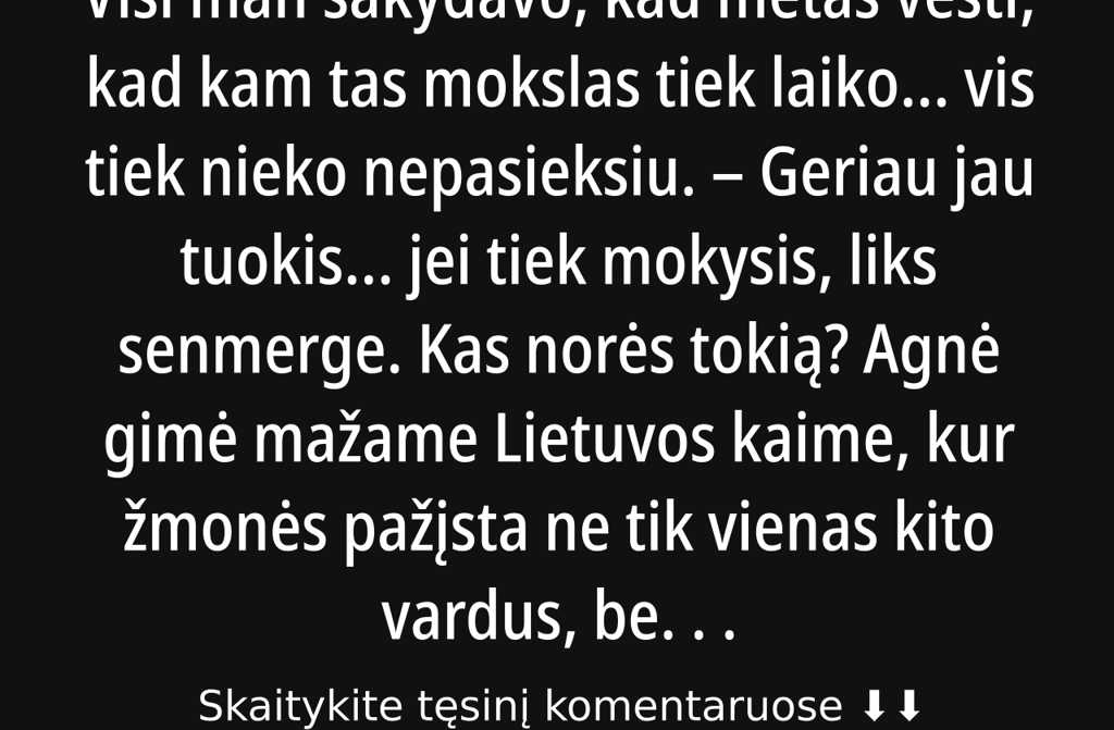 Agnė augo su mažu. Bet jos širdyje buvo dalykas, kurio niekas negalėjo atimti: didžiulis troškimas mokytis. Nuo mažens ji sakydavo: