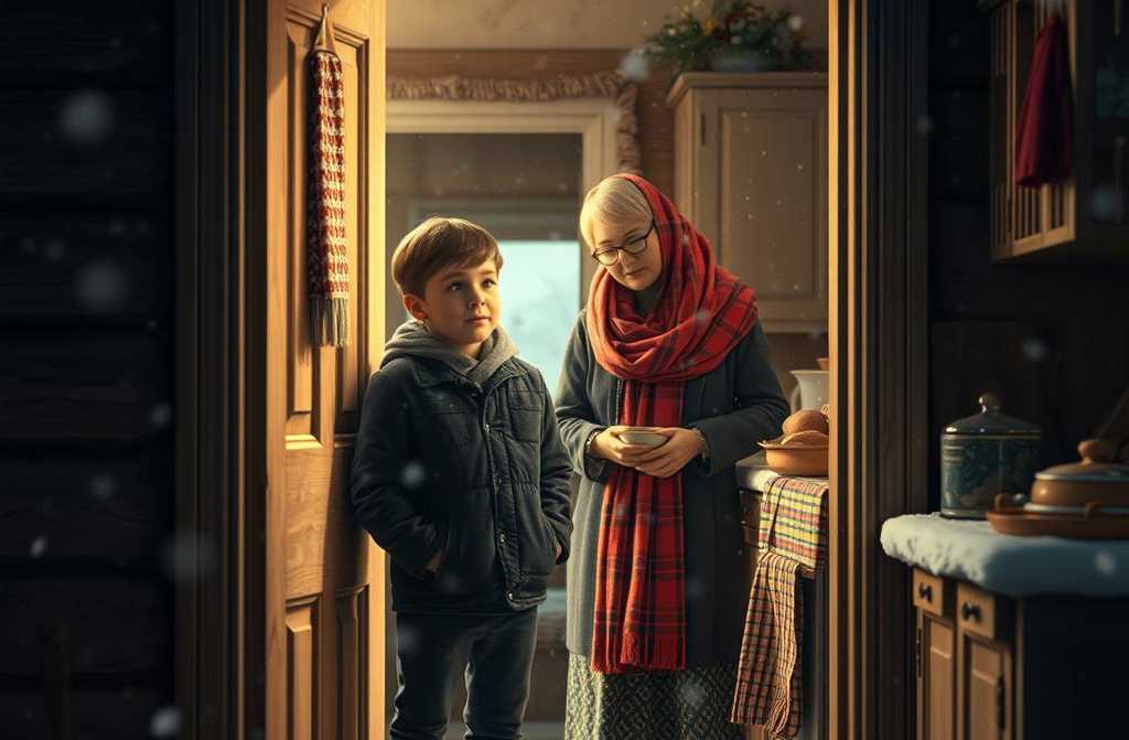 “Kur tu, sūneli, nevalgęs, o lauke šalta. Sėskis čia. Dabar užvirsiu košės, išvarysiu svečius ir išvalysiu grindis.”