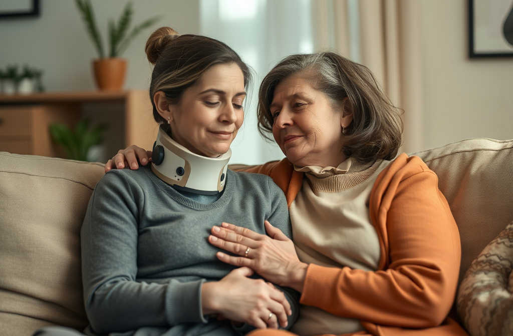 Tada tik spėjau ištarti: Greit užsidegs žalia, ir pajutau, kaip automobilis trenkėsi ir visas kūnas nusviro į priekį, kaklas staigiai persikreipė į šoną. Skausmas užliejo kaklą, petį it peiliu kas būtų durta. Priėmime man diagnozavo stiprų kaklo raumenų įtempimą ir nervų užspaudimą. Gydytojai uždraudė ne tik kilnoti sunkumus net lenktis ar praustis privalau labai atsargiai kelioms savaitėms, o gal net mėnesiams.