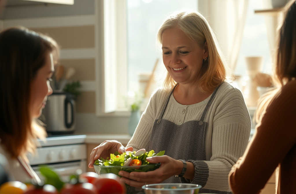 Vyras palygino mane su draugo žmona prie stalo ir gavo lėkštę salotų ant kelių